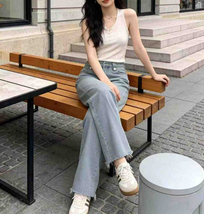 春夏季新款浅蓝色毛边直筒阔腿牛仔9分裤,独立包装带腰卡,码数S-XL码,260件左右,全清8.8元超低价秒杀!分货加一!