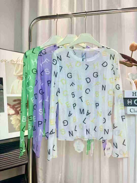 70件满印字母网纱打底衫女夏季薄款t恤圆领内搭长袖冰丝防晒衫,尺码s-2XL,质量好高弹力,零瑕疵,独立拉链包装,福利秒杀价4.9 不分货
