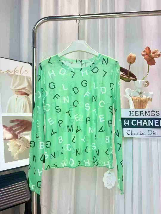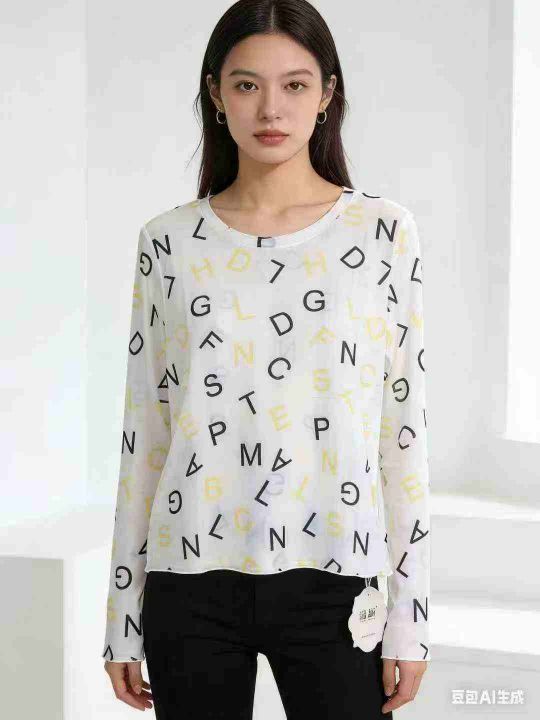 70件满印字母网纱打底衫女夏季薄款t恤圆领内搭长袖冰...