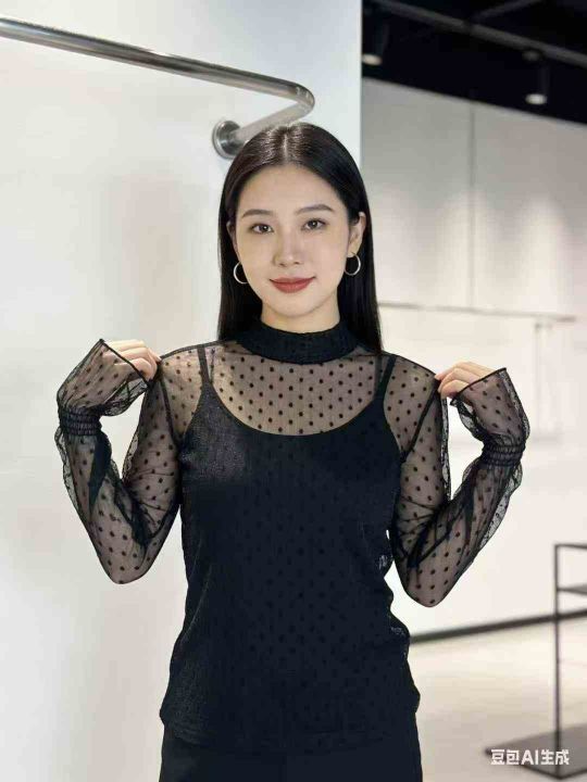 75件半高领镂空蕾丝打底衫女洋气长袖内搭超仙网纱上衣...