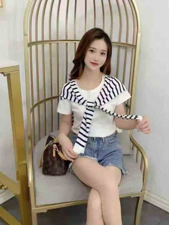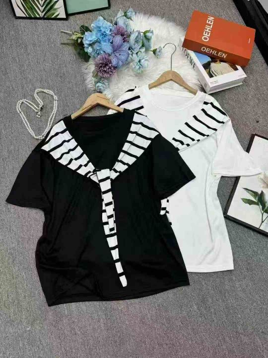 全清价5.9设计感条纹 短恤T恤女夏宽松显瘦通勤风上衣2...