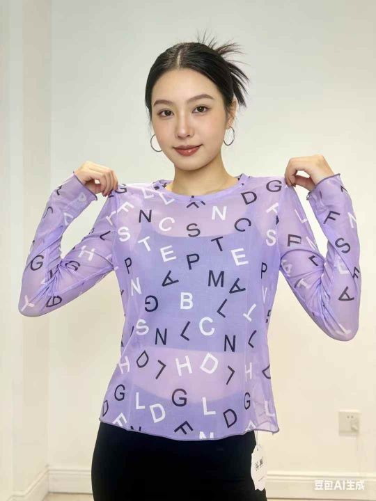 70件满印字母网纱打底衫女夏季薄款t恤圆领内搭长袖冰丝防晒衫,尺码s-2XL,质量好高弹力,零瑕疵,独立拉链包装,福利秒杀价4.9 不分货