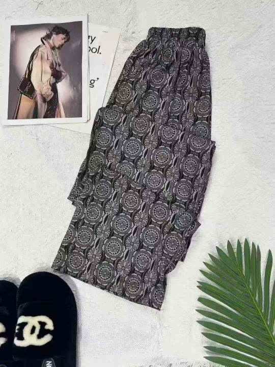 花色卫裤设计高腰显瘦宽松咖色休闲裤 独立包装 码数1-...