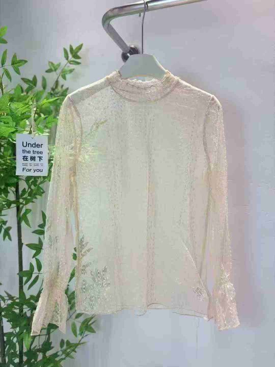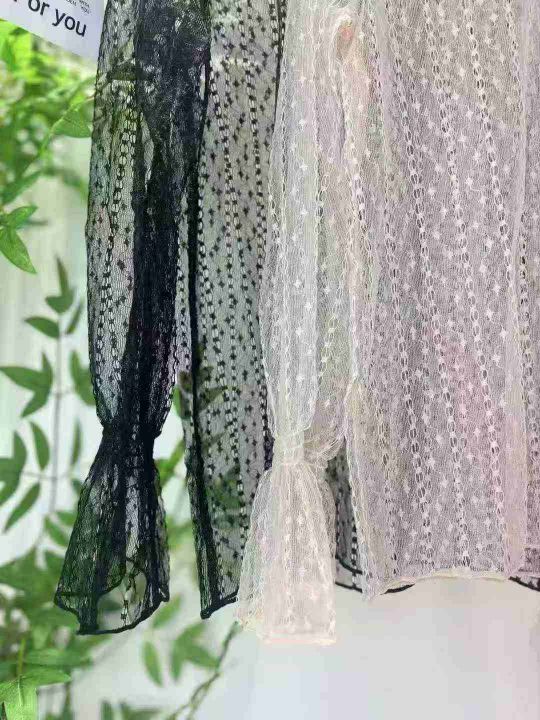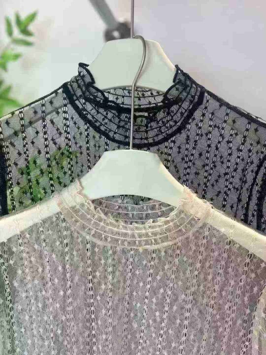 75件半高领镂空蕾丝打底衫女洋气长袖内搭超仙网纱上衣...