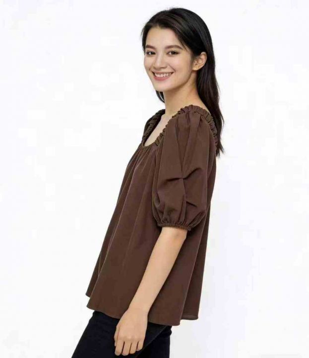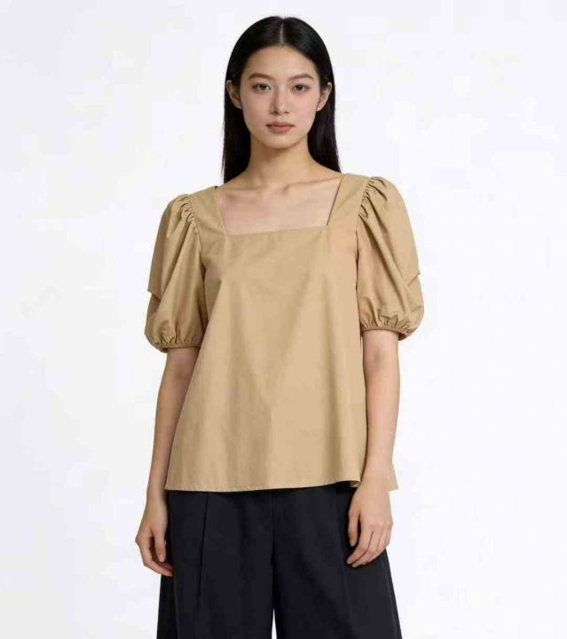 韩系甜美温柔风圆领泡泡袖上衣,整款两色,独立包装 1-2码(S- M)
