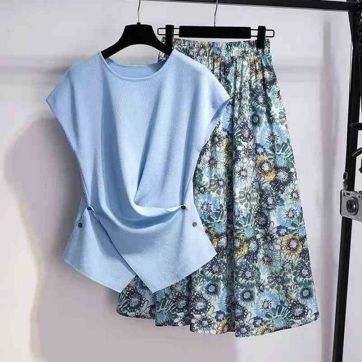 时尚休闲套装女新款夏装穿搭一整套洋气短袖T恤半身裙两件套,码数S-XL,数量3200套,独立包装,货品干净漂亮有质感。