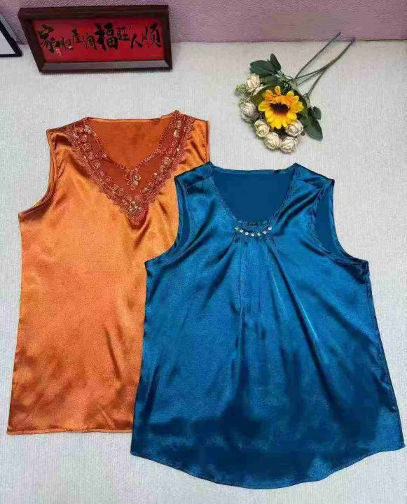 经典仿真丝绣花蕾丝拼接无袖背心.图片款式都单色1-4...