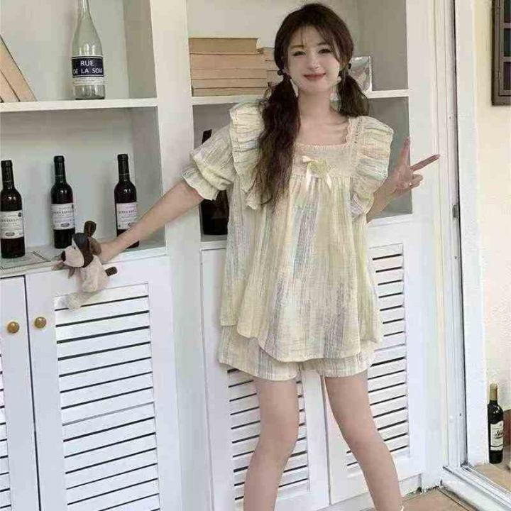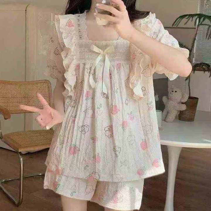 短袖甜美可爱公主风新款宽松蕾丝花边睡衣家居服,一个...