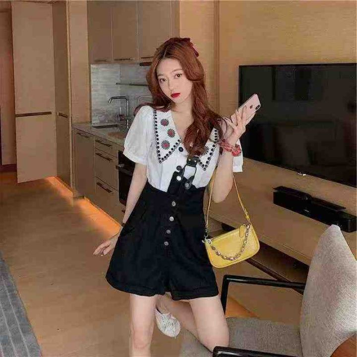 ☕️法式设计感绣花娃娃领泡泡袖小众宽松短袖衬衫女18...