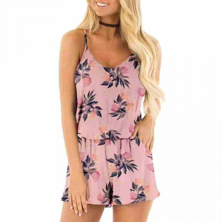 3.8清120件左右跨境亚马逊吊带连体裤春夏玫瑰花印花假...