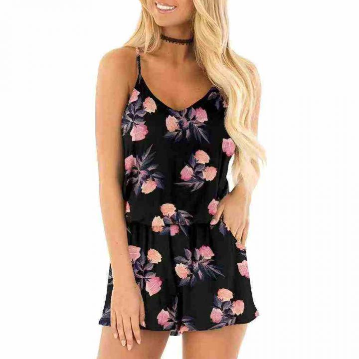 120件左右跨境亚马逊吊带连体裤春夏玫瑰花印花假两件 单款多色,独立包装,码数L-3xl