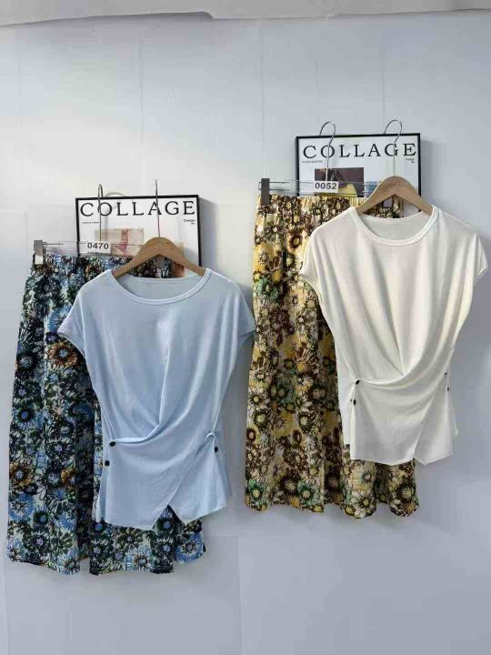 时尚休闲套装女新款夏装穿搭一整套洋气短袖T恤半身裙两件套,码数S-XL,数量3200套,独立包装,货品干净漂亮有质感。