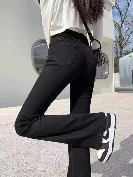 黑色微喇牛仔裤春季新款高腰显瘦喇叭裤修身拖地马蹄裤子150件,独立包装带...