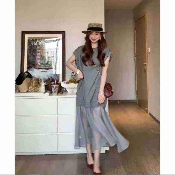韩系简约休闲连衣裙769件7.8,面料舒适,网纱拼接码数...