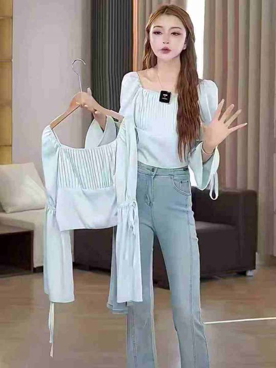☕️夏季蓝色衬衫长袖方领法式气质雪纺小衫宽松短款洋气独特别致上衣122件全清7.8元,均码 ,图片单色,正品独立包装[庆祝][庆祝][庆祝]