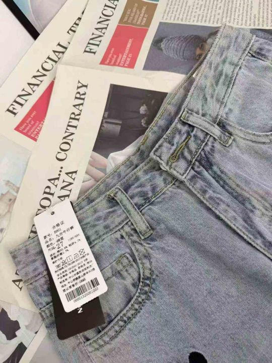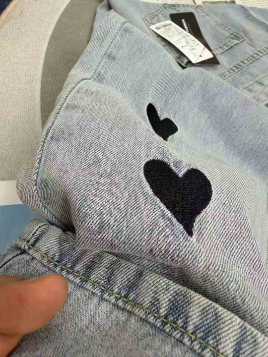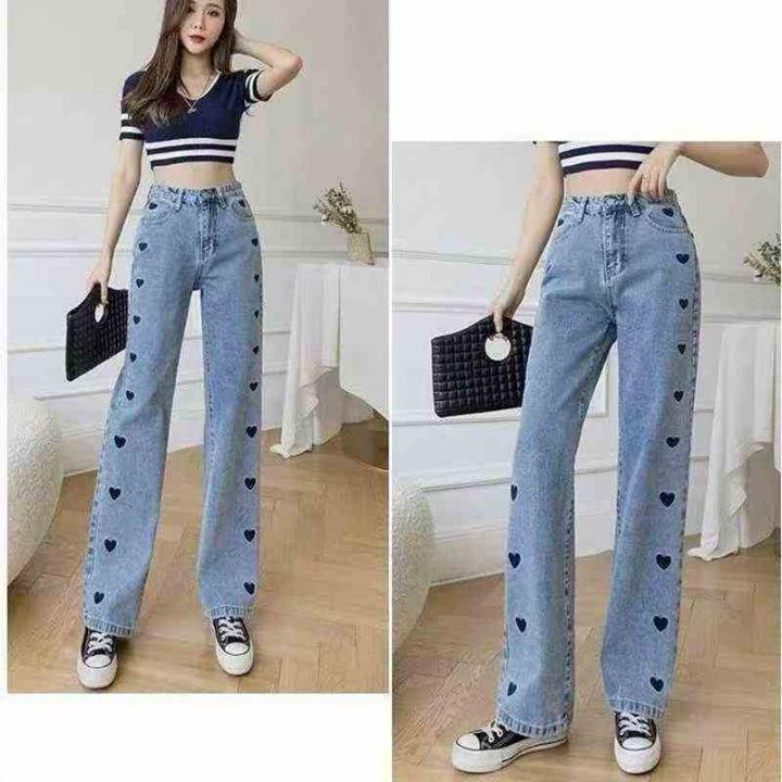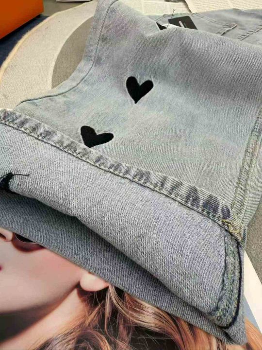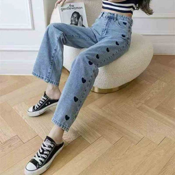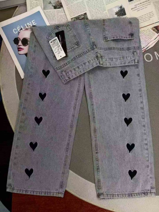 刺绣爱心阔腿裤显瘦高腰宽松牛仔裤,单款单色,数量380条,26-31码,福利价8.8秒杀(8901#610)