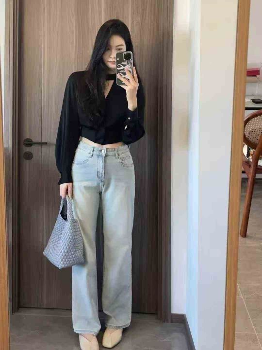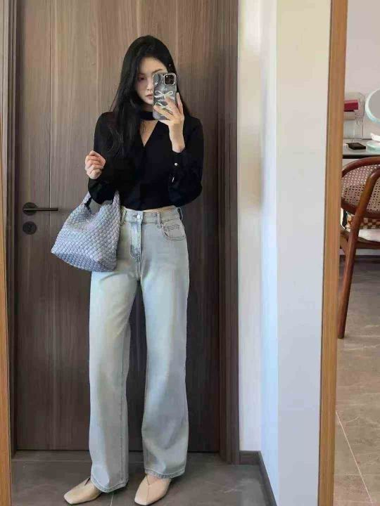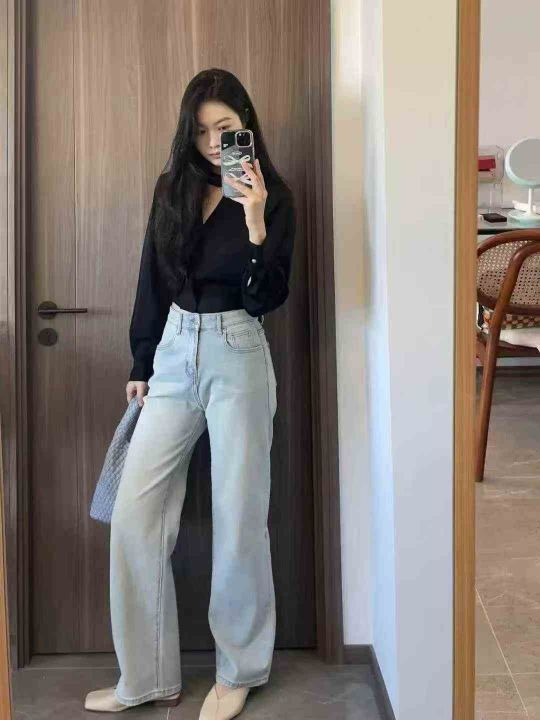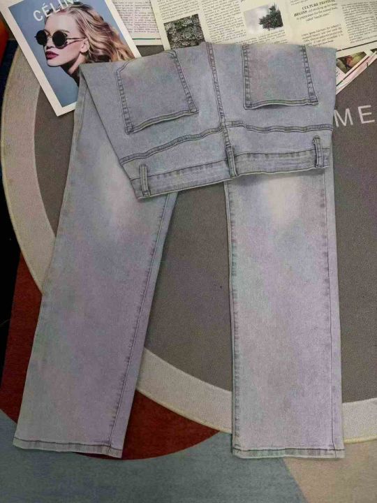 浅色大码高腰宽松显瘦窄版阔腿牛仔裤,单款单色,数量...