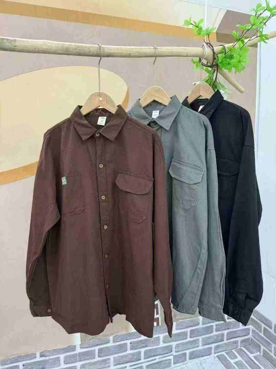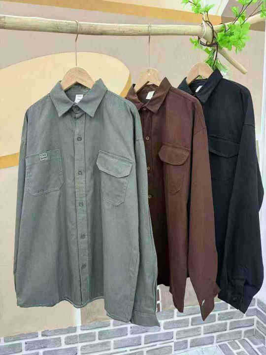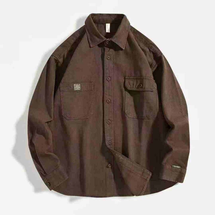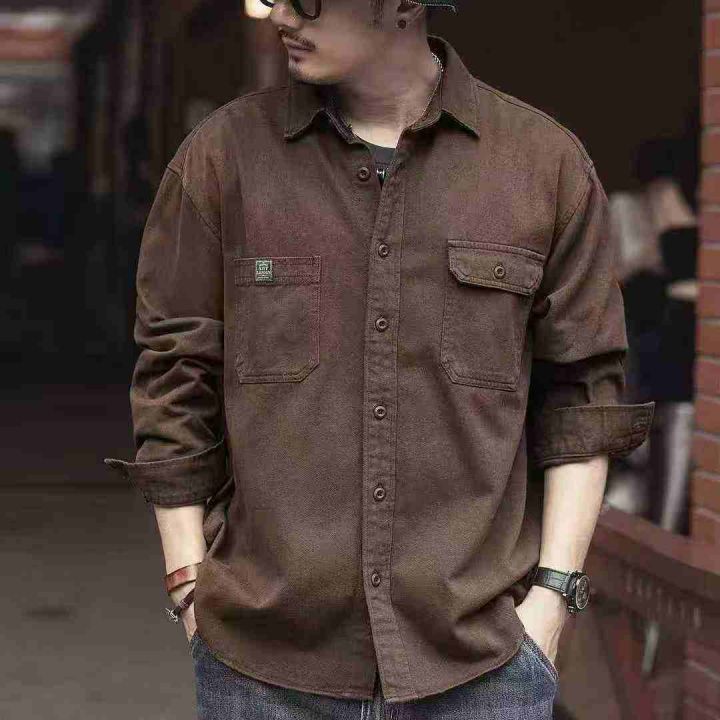 清8.8分货➕1衬衫男春秋斜纹水洗棉男士工装外套双口袋...