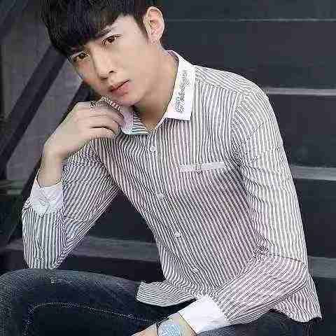 条纹衬衫男长袖商务潮流秋季韩版修身帅气青年休闲白衬衣男士寸衣,数量813件,码数M-2XL,独立包装,货品干净漂亮。