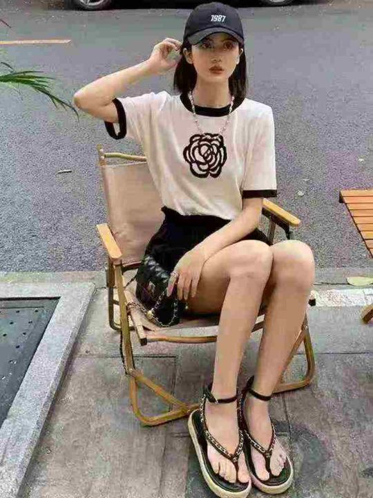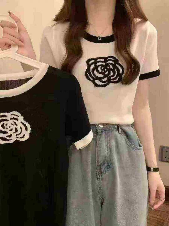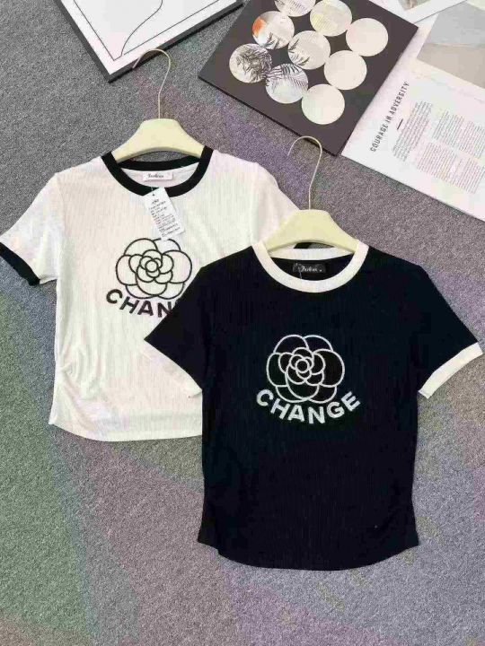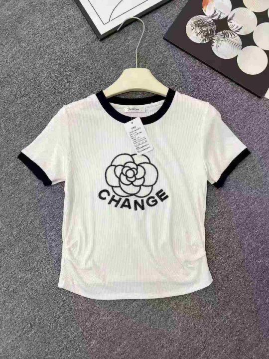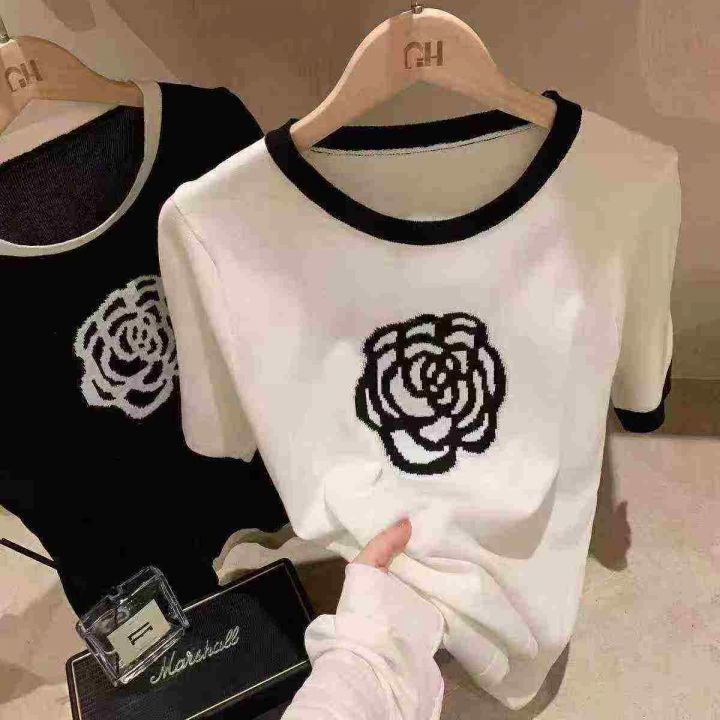 ☕️山茶花刺绣上衣女港味气质温柔风高端减龄短袖T恤500件全清7.8元 ,分货8.8元 ,单款黑白色,码数S到XL高弹力,刺绣辣妹T恤[庆祝][庆祝][庆祝]