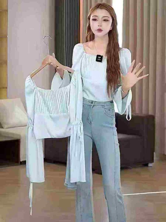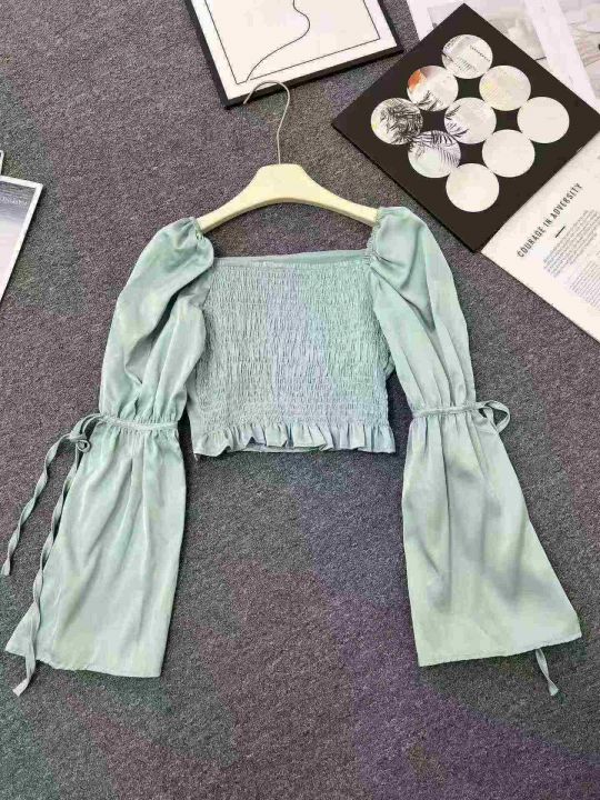 ☕️夏季蓝色衬衫长袖方领法式气质雪纺小衫宽松短款洋气独特别致上衣122件全清7.8元,均码 ,图片单色,正品独立包装[庆祝][庆祝][庆祝]