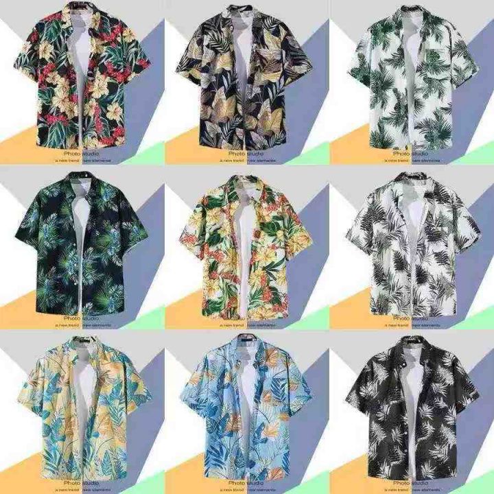 欧洲站夏季新款男士衬衫夏日风情时尚短袖免熨烫翻领衬...