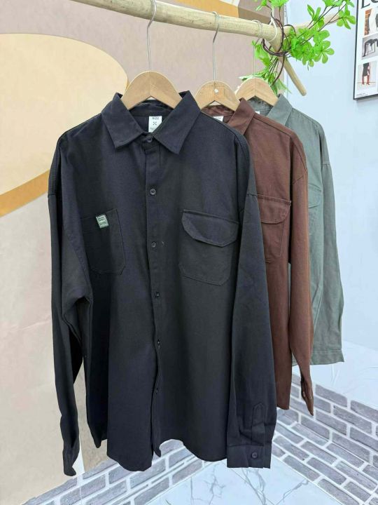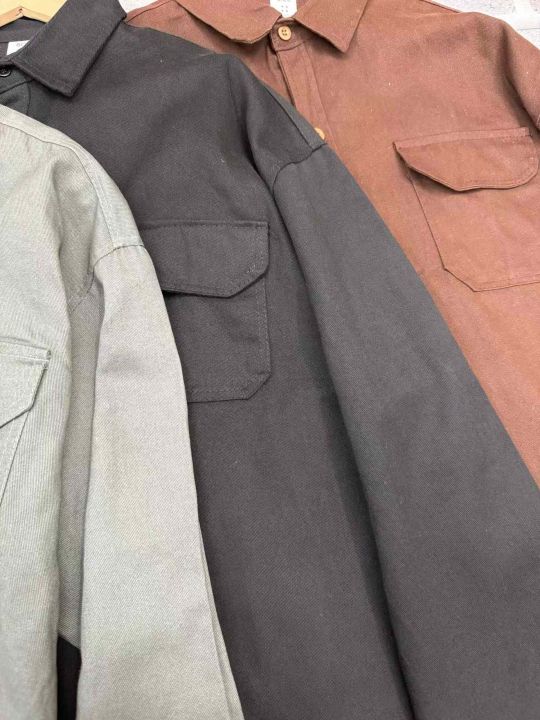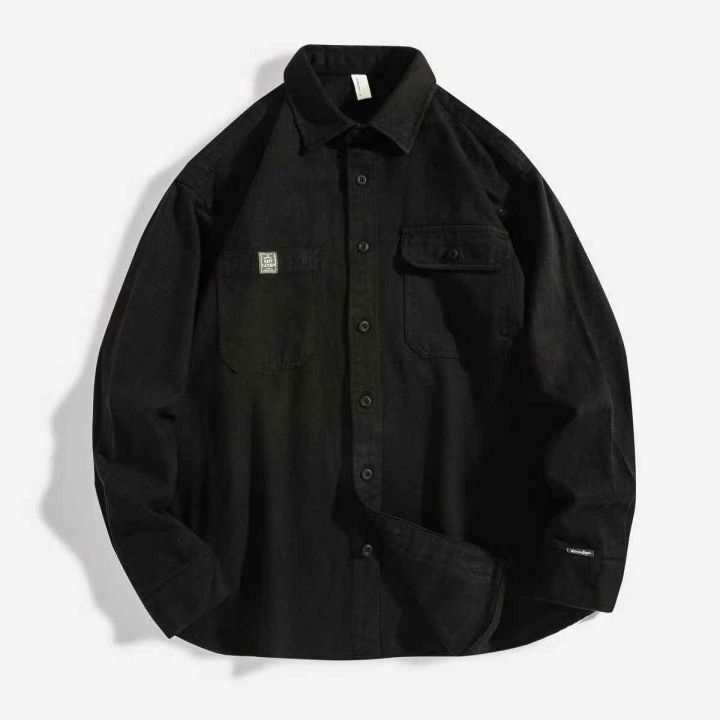 清8.8分货➕1衬衫男春秋斜纹水洗棉男士工装外套双口袋...