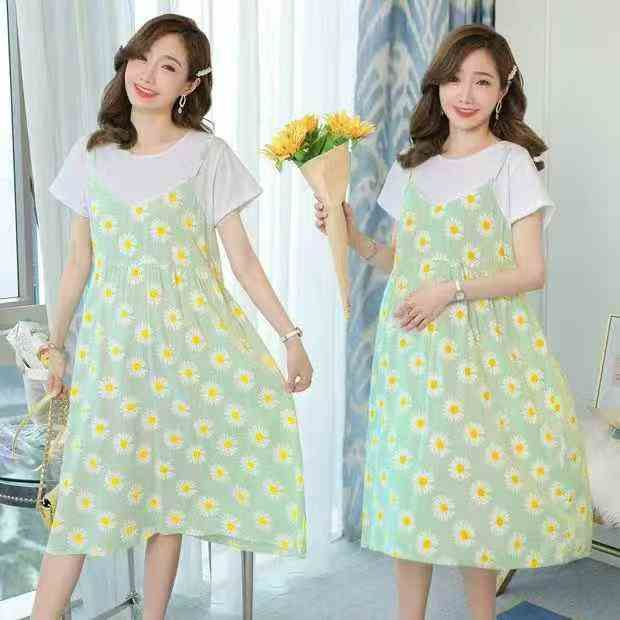 5.8清70件新款孕妇装网红夏装假两件宽松甜美连衣裙,...