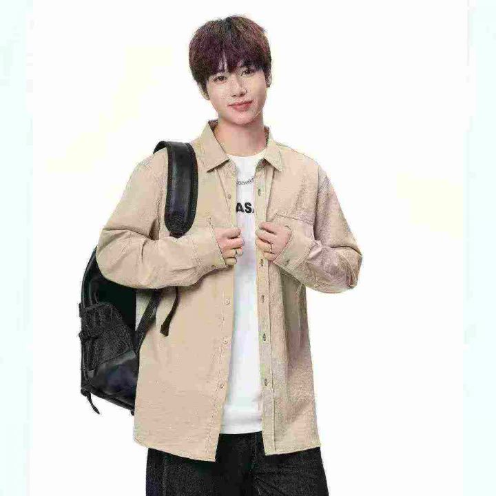清7.8分货➕1衬衫男长袖新款韩版潮流帅气港风高级感男士工装休闲衬衣,码数...