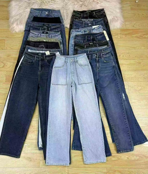 Women\'s jeans wholesale外贸杂款牛仔阔腿直筒烟管紧...