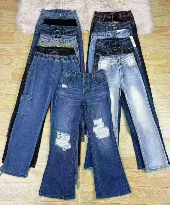 外贸杂款牛仔阔腿直筒烟管紧身牛仔裤 ,视频图片上的裤型,独立包装已拆除,码数都有(s-3xl码)货品新净,数量980件左右,全清10.9超低价秒杀!