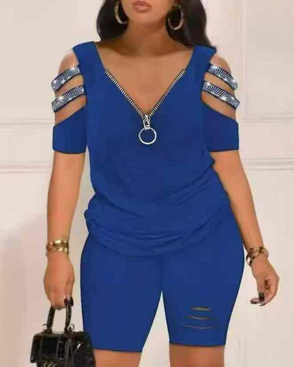 7.8清电商仓回收774套跨境热卖时尚舒适慵懒休闲女士短袖短裤套装,码数S-2X...