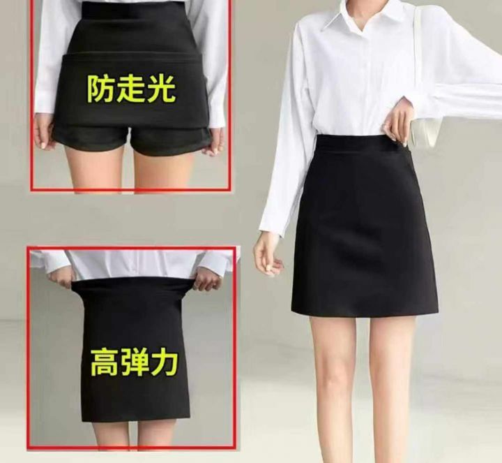 春夏季新款职业A字裙防走光高腰弹力百搭黑短裙,独立...