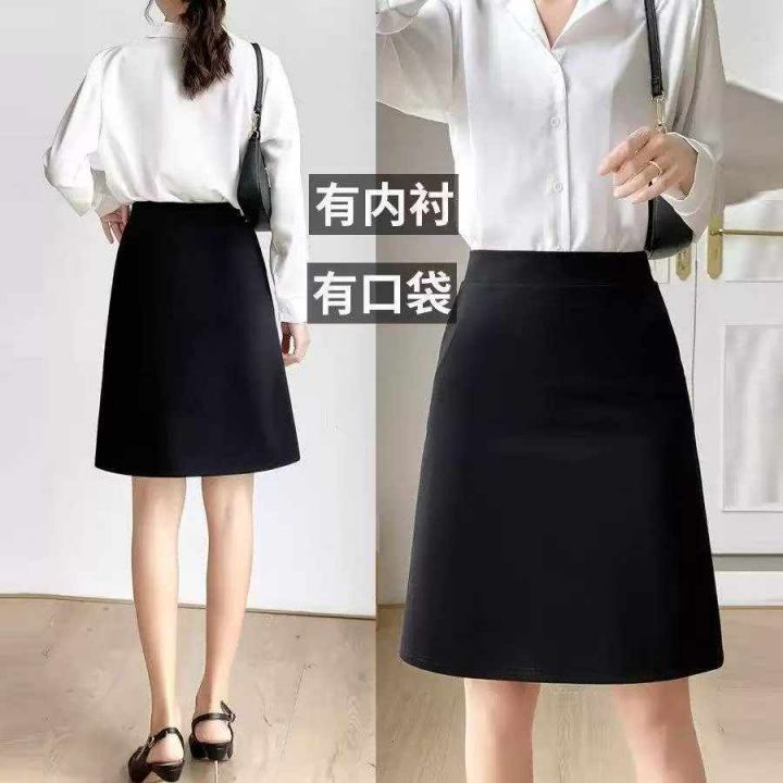 春夏季新款职业A字裙防走光高腰弹力百搭黑短裙,独立...