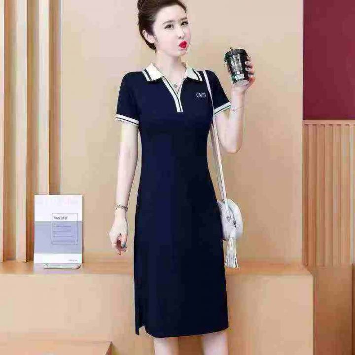 polo连衣裙女夏过膝长款直筒T恤裙休闲宽松遮肚子运动连衣裙,码数2-7码(s-4XL),437条,分货➕1,型号122#49