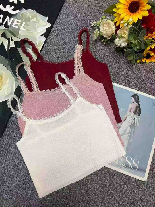 夏季新款纯欲奶甜法式别致甜辣蕾丝拼接针织吊带背心,...