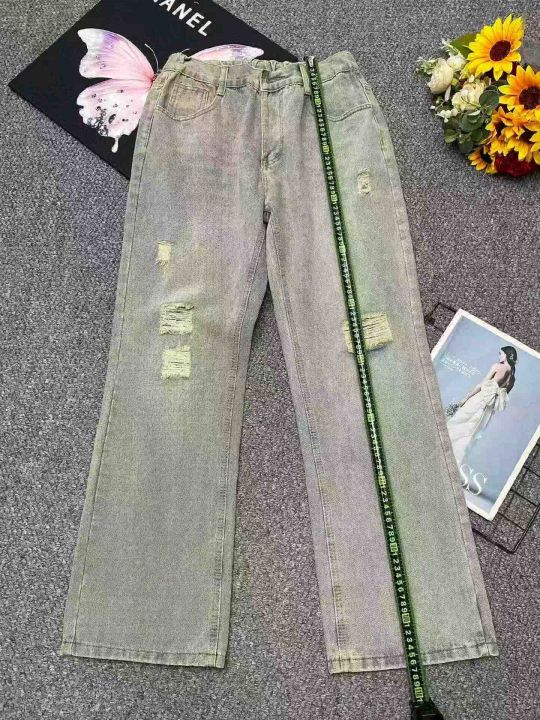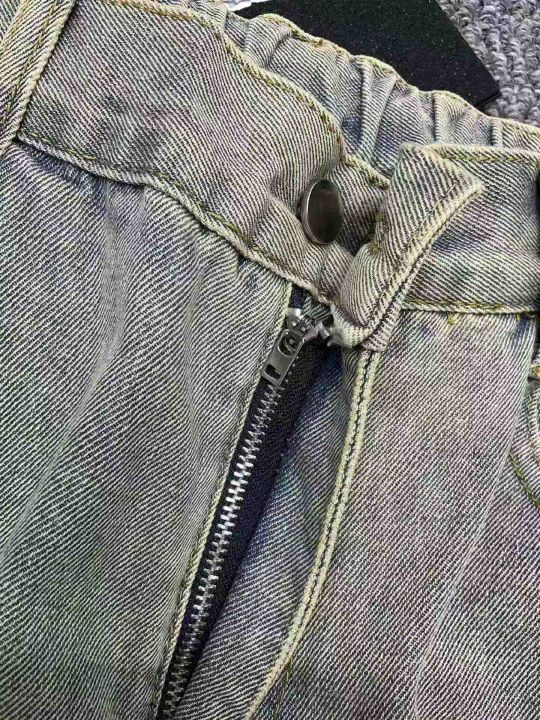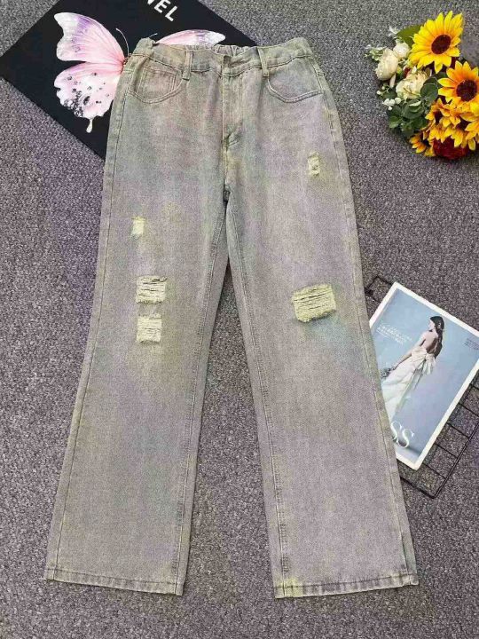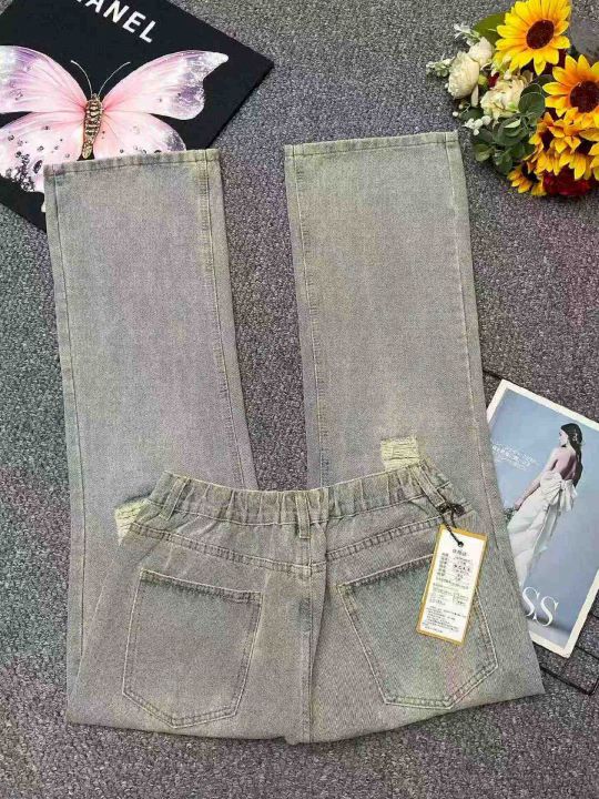 春夏季新款男士洗水棉美式复古乞丐直筒显瘦弯刀微喇牛...