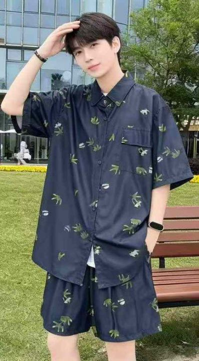 夏季新款男女同款碎花衬衫短裤沙滩海边两件套,独立包装,工厂新货1--4码(相当于M--2XL码)305套左右,全清8.8元超低价秒杀!分货加一!