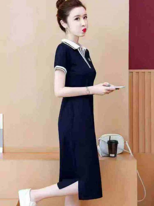 polo连衣裙女夏过膝长款直筒T恤裙休闲宽松遮肚子运动连衣裙,码数2-7码(s-4XL),437条,分货➕1,型号122#49