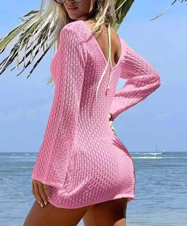夏季新款欧美原单沙滩包臂性感针织镂空长袖爆款罩衫防晒连衣裙,独立包装,均码面料柔软舒适有弹力,825件,全清5.9元超低价秒杀!分货加一!