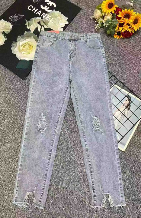 春夏季新款高弹力网红复古洗水棉破洞9分牛仔小脚裤,独立包装带腰卡,码数M-XL码, 180件左右,全清8.9元超低价秒杀!