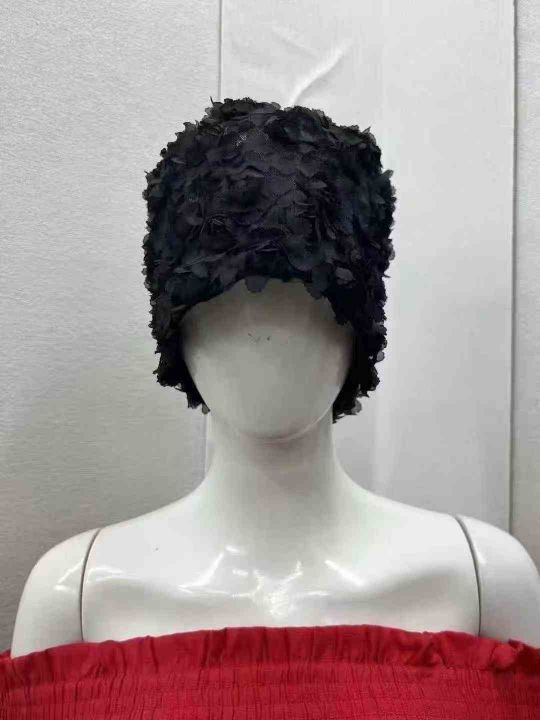 238左右个韩版时尚黑玫瑰花瓣蕾丝女帽!防水袋装!