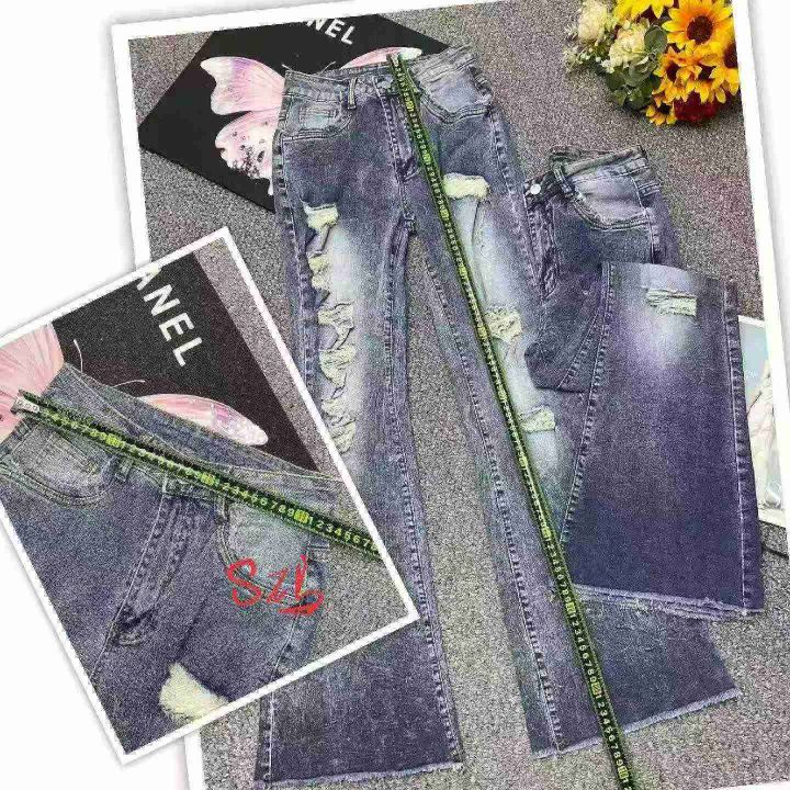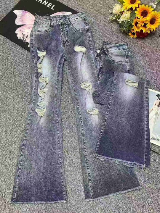 春夏季新款品牌外贸原单美式宽松高弹力洗水棉破洞牛仔微喇叭裤,独立包装,码数S- 2XL码,140件左右,全清13.8元超低价秒杀!