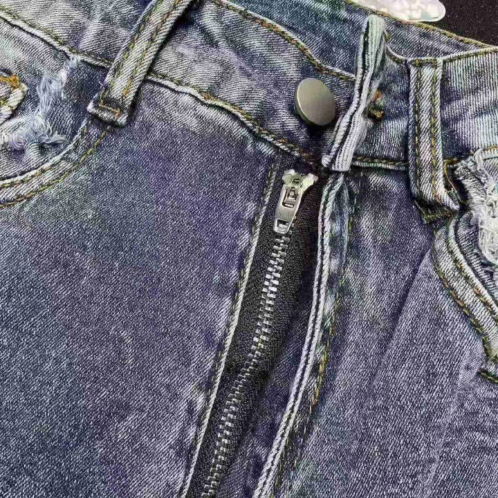 春夏季新款品牌外贸原单美式宽松高弹力洗水棉破洞牛仔...