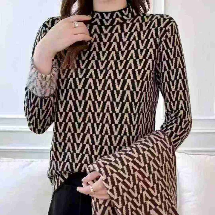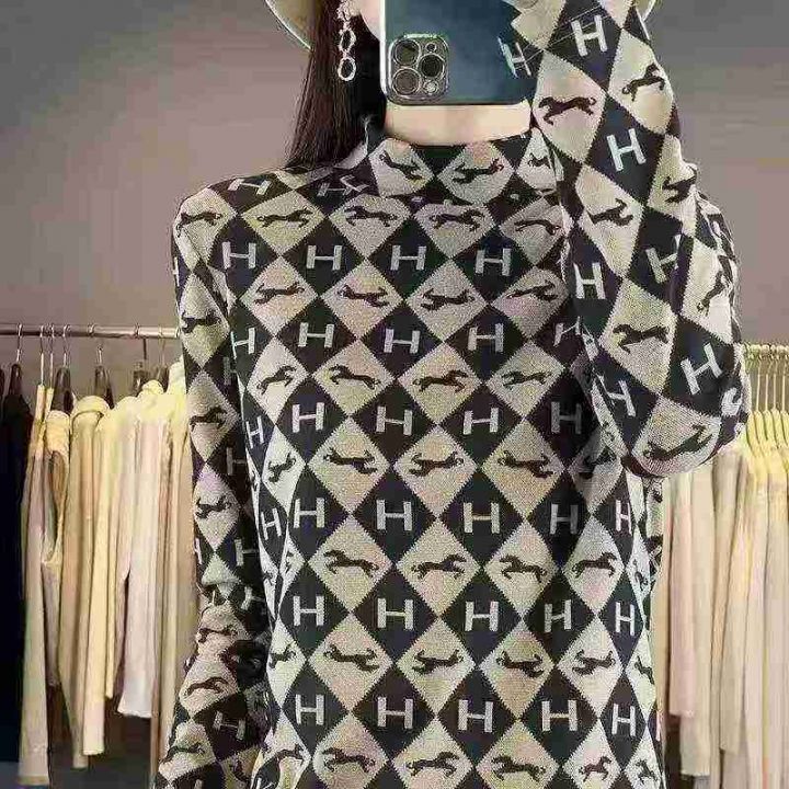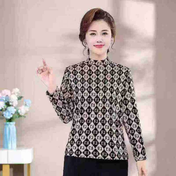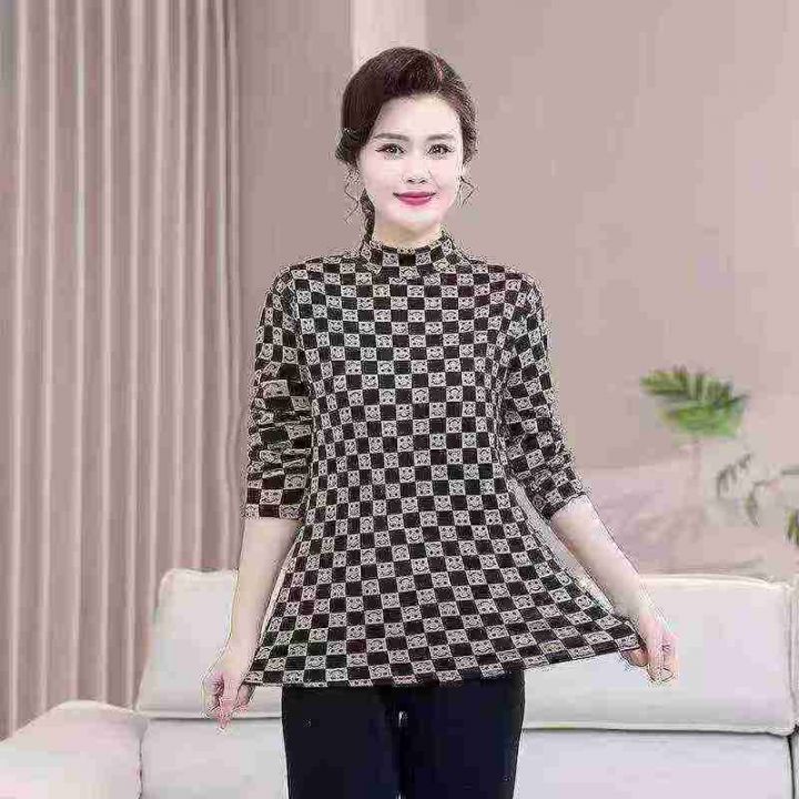 妈妈春秋装长袖T恤上衣洋气宽松中年女时尚半高领印花保暖打底衫,混配,不挑款,分货➕1
