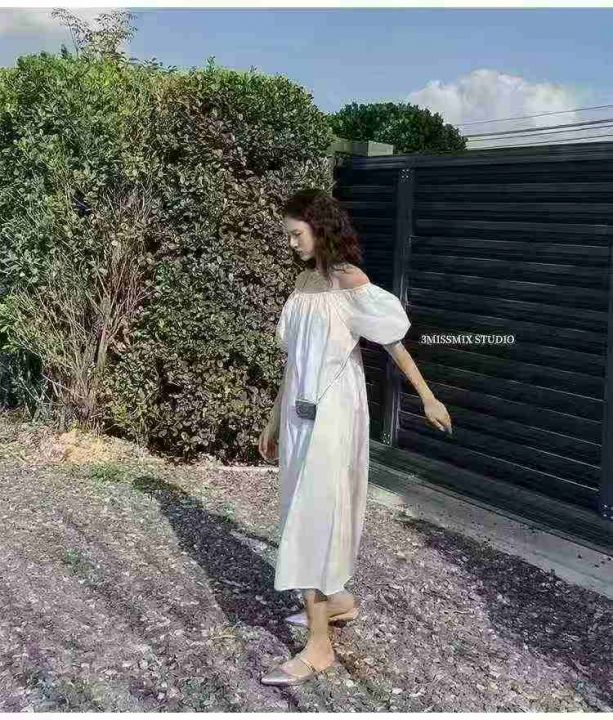 43件天猫在售冷淡风白色仙女裙子茶歇裙一字领露肩性感...