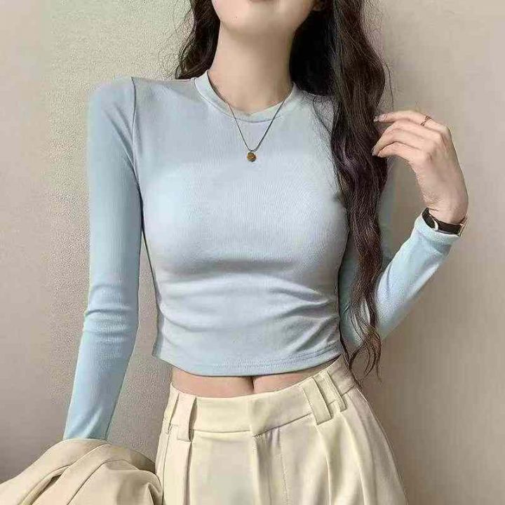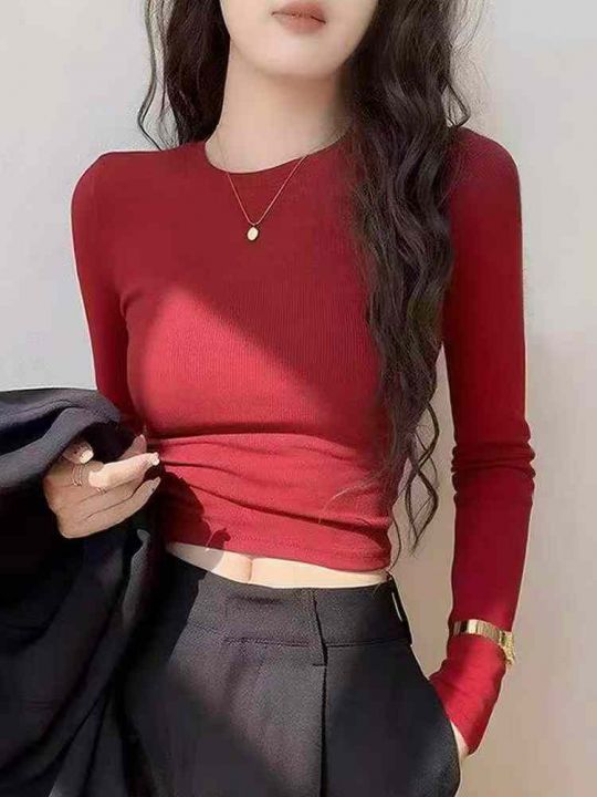 春秋新款外穿打底净版简约弹力修身显瘦弹力拉架棉长袖...