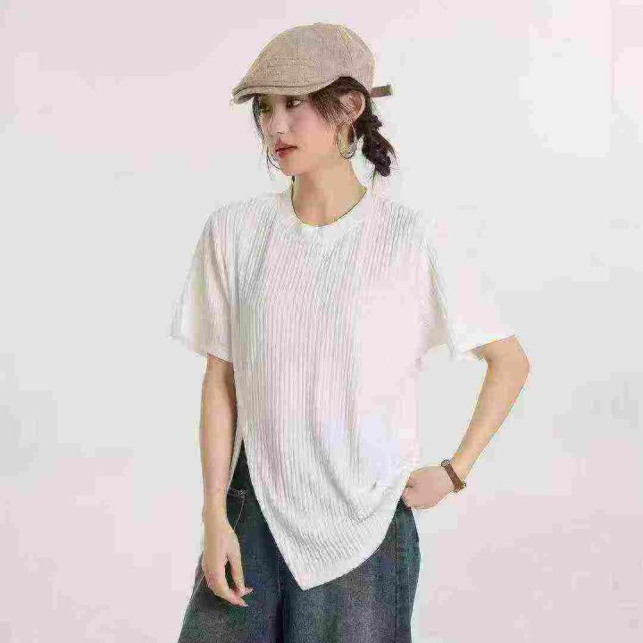冰丝螺纹短袖,分叉下摆设计,整款两色,独立包装