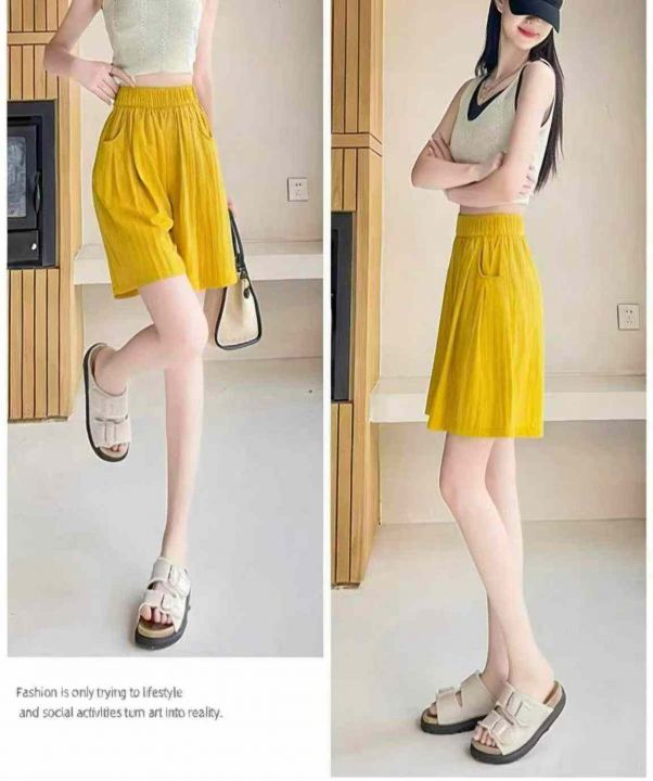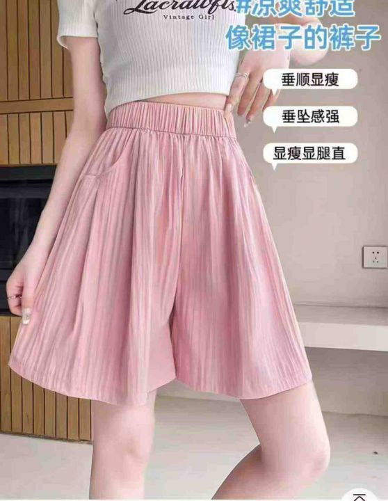 夏季新款直筒高腰清凉五分肌理感冰丝褶皱宽松休闲短裤,独立包装,码数S--XL码, 600件左右,全清3.8元超低价秒杀!分货加一!