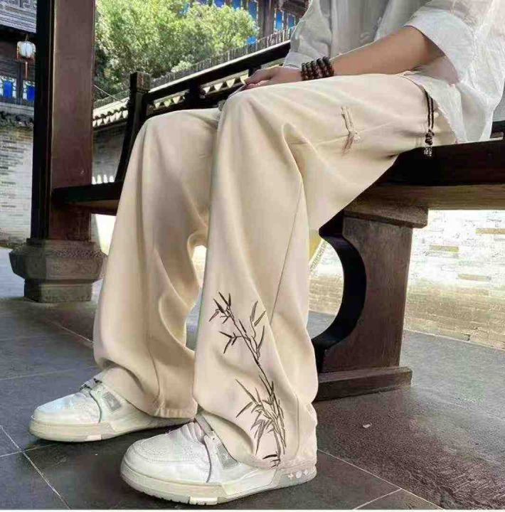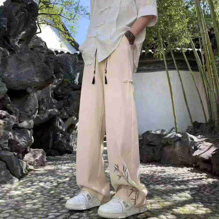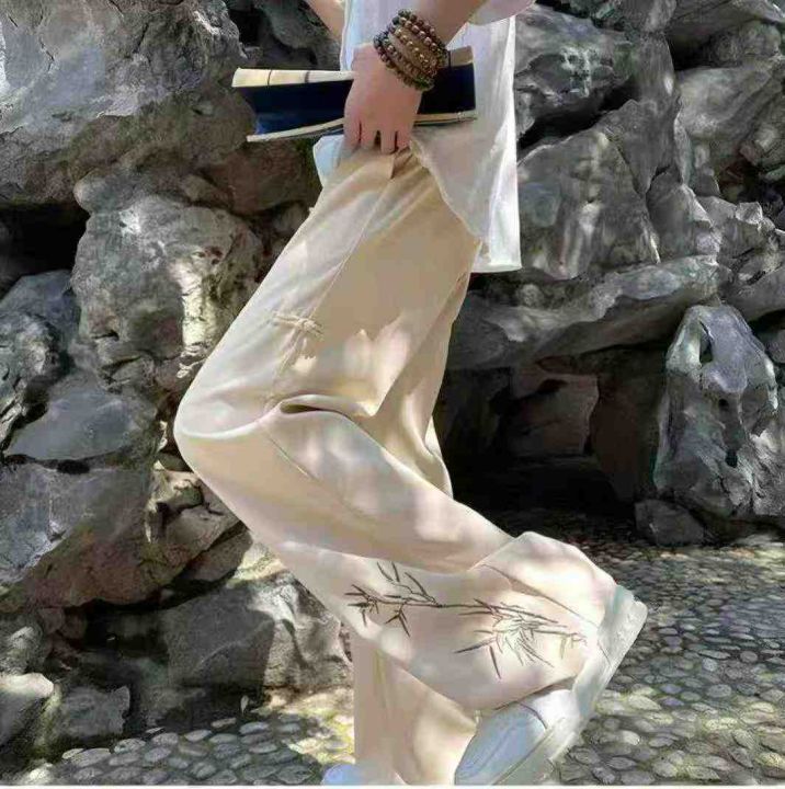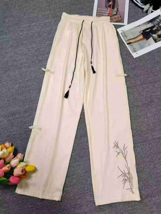[福]国风竹子刺绣冰丝垂感休闲长裤,总数量:410条左右...